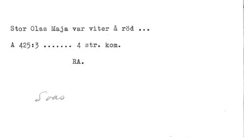 //// Stor Olas Maja var viter å röd ... //// i //// A 425*3 4 s"tr* kom. //// HA. //// J ^t^O ////