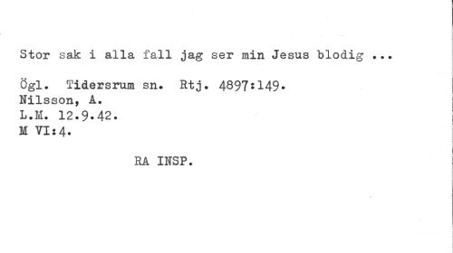 //// Stor sak i alla fall jag ser min Jesus blodig //// Ögl. Tidersrum sn. Rtj. 4897:149. j //// Hilsson, A. ; //// L.M. 12.9.42. i //// M VI:4. //// RA INSP. //// I //// % ////