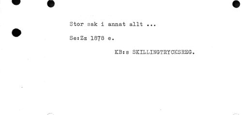 //// Stor sak i annat allt ... Se:Zz 1878 e. //// KB:s SKILLIHGTRYCKSBSG. //// * ////