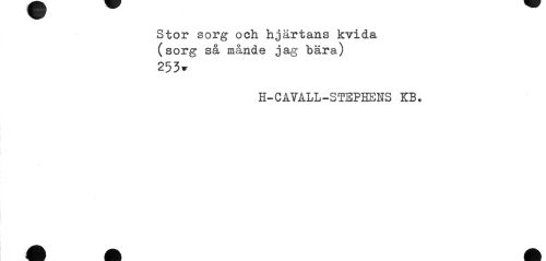 //// Stor sorg och hjärtans kvida (sorg så månde jag bära) //// 253» //// H-CAVALL-STEPHENS KB. ////