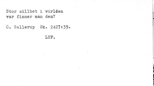 //// Stor sällhet i världen var finner man den? //// ¦ //// Ö. Sallerup Sk. 242?*39» //// LUP. //// f //// * //// j= ] //// i ////