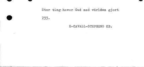 //// Stor ting haver Gud med världen gjort //// H-CÅVALL-STEPHENS KB. ////