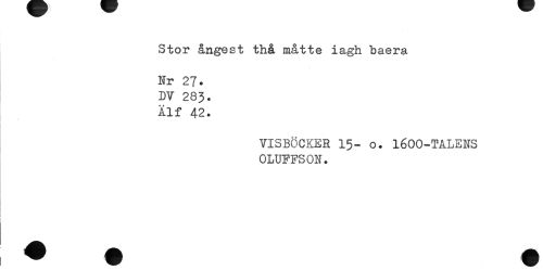 //// Stor ångest thå måtte iagh baera //// Nr 27. DV 283. Alf 42. //// VISBÖCKER 15-0. 1600-TALENS OLUFFSON. ////