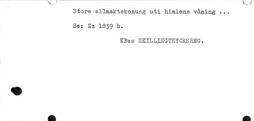 //// Store allmaktskonung uti himlens våning ... Se: Zz 1839 b. //// KB:s SKILLINGTRYCKSREG. ////