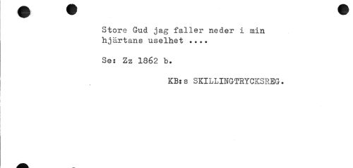 //// • 1 I " p //// Store Gud jag faller rieder i min hjärtans uselhet //// Se: Zz 1862 b. //// KB:s SKILLINGTRYCKSREG. ////