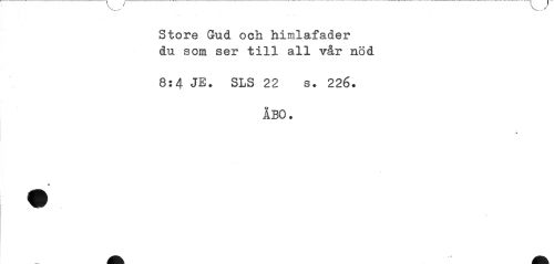 //// Store Gud och himlafader du som ser till all vår nöd //// 8:4 JE. SLS 22 s. 226. //// ÅBO. //// » //// « ////