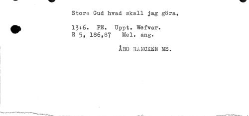 //// Store Gud hvad skall jag göra, //// A 13:6. PE. Uppt. Wefvar. //// H 5, 186,87 Mel. ang. //// ÅBO RANCKEN MS. //// --- ////