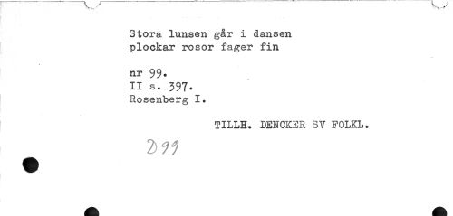 //// Stora, lunsen går i dansen plockar rosor fager fin //// » //// nr 99. //// II s. 397» //// Rosenberg I. //// TILLH. BE1CKE1 SV FOLKL. //// 7)91 ////