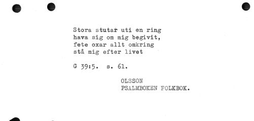 //// Stora stutar uti en ring hava sig om mig begivit, fete oxar allt omkring stå mig efter livet //// G 39:5» b. 61. //// OLSSON //// PSALMBOKEN FOLKBOK. ////
