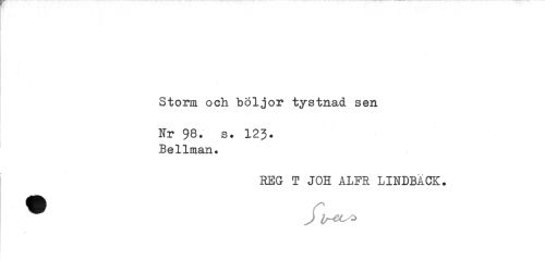 //// Storm och "böljor tystnad sen //// Bfr 98. s• 123. Bellman. //// REG T JOH ALFR LIHDBACK. //// S^lr-ec^ ////