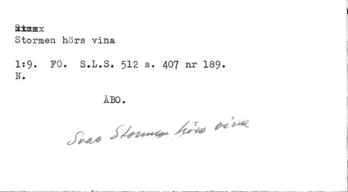 //// I //// s±skix //// Stormen hörs vina //// 1:9. Fö. S.L.S. 512 s. 40? nr 189. I. //// ÅBO. //// | ////