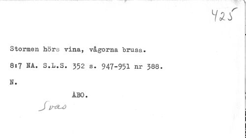 //// YÄ/ //// Stormen hörs vina, vågorna brusa. //// 8s? M. S.L.S. 352 s. 947-951 nr 388. I. //// ÅBO. //// J v&U) ////