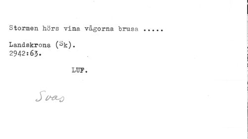 //// I t //// Stormen hörs vina vågorna brusa //// Landskrona (bk). //// 2942:63- | //// i i //// LUP. ' //// j //// j c^o ////