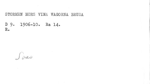 //// I //// I //// STORMEN HÖRS VINA VÅGORNA BRUSA //// i //// D 9- 1906-10. Ra 14. //// E. ////