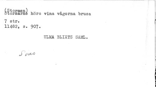 //// (Stormen) ... . « otormarné hors vina vågorna brusa //// 7 str. //// 11482, s. 907. //// ULM BLIXTS 8AML. //// J //// 1 ' //// ¦ //// | ////