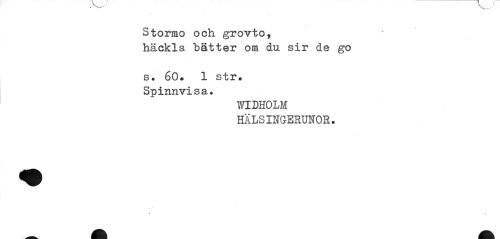 //// Stormo och grovto, //// häckla bätter om du sir de go //// s. 60# 1 str. Spinnvisa. //// WIBHOLM HALSINGERUNOR. ////