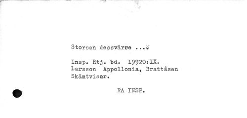 //// Storsan dessvärre . //// Insp. Rtj. bd. 19920tIX. Larsson Appollonia, Brattåsen Skämtvisor. //// ^ RÅ INSP. ////