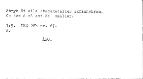 //// Stryk åt alla stadsgesäller skrinnskram, Ge dem Qj 3 a att de smäller» //// 1:5. INE 28b nr. 67. j //// sr. i //// i //// ÅBO. ////