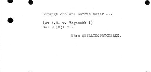 //// Strängt cholera morbus hotar ... //// ^^ (Av A.H. v. ¥e ge sack ?) //// Ses E 1831 x . //// KBts SKILLINGTRYCKSBEG. ////