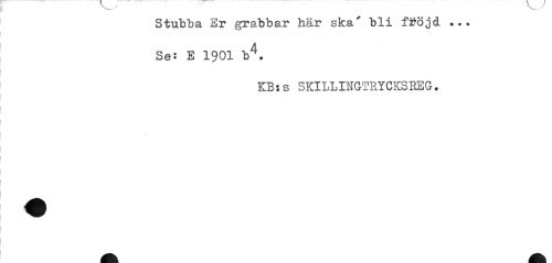 //// Stubba Er grabbar här ska' bli fjjöjd //// Se: E 1901 b4. //// KB:s SKILLINGTRYCKSBEG. ////