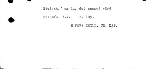 //// Student.' om du, det namnet värd //// ^ Franzén, F.1I. s. 109• //// H-FORS SKILL.~TR. KAT. ////