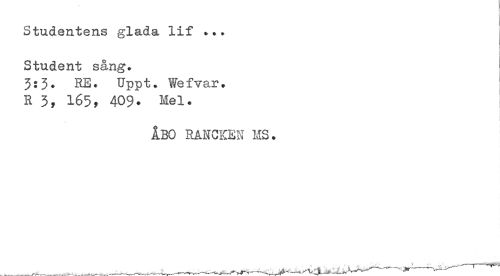 //// Studentens glada lif ... Student sång. //// 3:3. RE. Uppt. Wefvar. j //// R 3, 165f 409? Mel. //// ÅBO RANCICEK MS. //// ___.___-, '-W ////