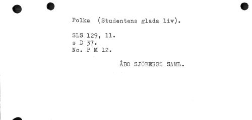 //// Polka (Studentens glada liv). //// sls 129, 11. //// s D 37. //// No. P M 12. //// ÅBO SJÖBERGS SAML. ////