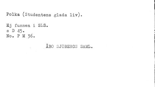 //// Polka (Studentens glada liv). Ej funnen i SLS. //// s D 45» //// No. P I 36. //// ! //// ÅBO SJÖBERGS SAML. //// ! //// i 1 //// i ////