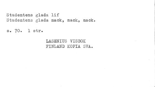 //// Studentens glada lif //// Studentens glada mack, mack, mack. //// j //// s. 70• 1 str. //// LÅSENIUS ¥13BOS FINLAND KOPIA STA. ////