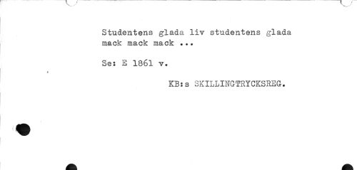 //// Studentens glada liv studentens glada mack mack mack •.* //// Se: E 1861 v. //// * //// KB:s SKILLINGTRYCKSREG. ////