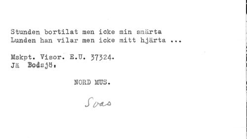 //// r //// Stunden bortilat men icke min smärta //// Lunden han vilar men icke mitt hjärta j. //// 1 //// r //// Mskpt. Visor. E.U. 37324- I //// Jä Bodsjö, i //// NORD MUS. //// SChL^ //// I //// * ////