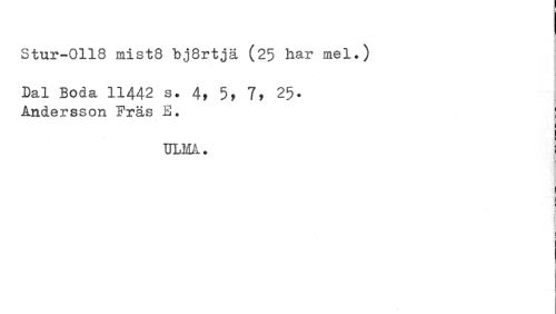 //// Stur-0118 mist8 björtjä (25 har mel.) //// Dal Boda 11442 s. 4, 5, 7, 25-Andersson Fräs E. //// TJLMA. ////