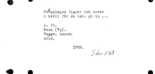 //// St^ggingen ligger och sover i kväll får du inte gå in //// s. 21. Naum (Vg). Vaggv. barnv. 4214. //// IFGH. //// fflÉn åto åtk ////