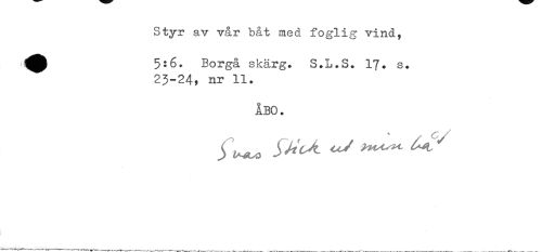 //// Styr av vår båt med foglig vind, //// Borgå skärg* S.L.S. 17» s. 23-24, nr 11* //// ÅBO. //// S S^cA oj tå ////