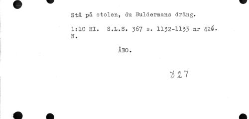 //// Stå på stolen, du Buldermans dräng. //// Is 10 Hl. S.L.S. 367 s. 1132-1133 nr 426. //// K. //// ÅBO. //// 1)11 ////