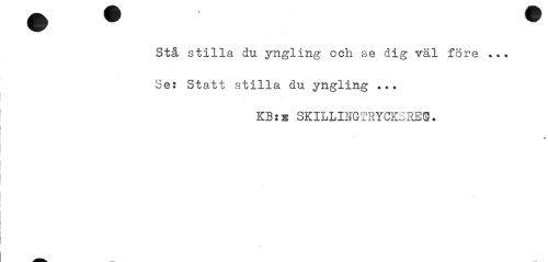 //// Stå stilla du yngling och se dig väl före . Se: Statt stilla du yngling ... //// KB:s SKILLIIGTRYCKSREi. //// » ////