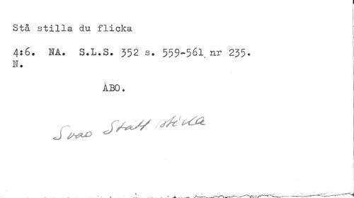 //// Stå stilla du flicka //// j //// i //// 4:6. HÅ. S.L.S. 352 s. 559-561 nr 235. N. //// ÅBO. //// J I ////