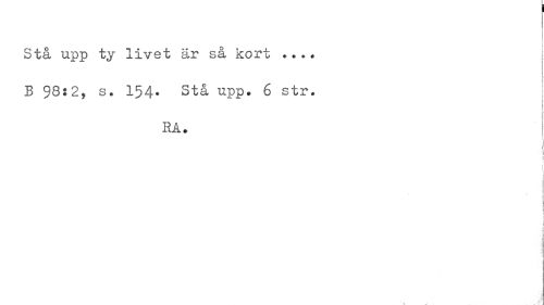 //// Stå upp ty livet är så kort ... //// B 98* 2, s. I54. Stå upp* 6 str. //// RA. //// f ////
