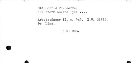 //// Står ofrid för dörren hör storklockans ljud ... //// Arbetssånger II, s. 949. E.U. 28354* Dr Lima. //// HORD MUS. ////