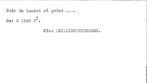 //// Står än landet så grönt ... //// Se: £ 1848 f5. //// KB:s SKILLINGTRYCKSREG. ////