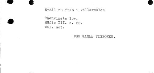 //// Ställ nu fram i källarsalen //// ^^ Rhenvinets lov. //// W Häfte III. s. 22. //// Mel. not. //// DEM GAMLA YlSBOKEN. ////