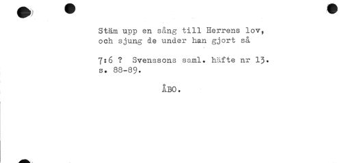 //// Stäm upp en sång till Herrens lov, och sjung de under han gjort så //// v //// 726 ? Svenssons sami. häfte nr 13? s. 88-89. //// ÅBO. ////