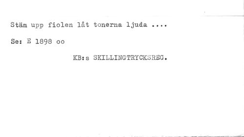 //// \ //// Stäm upp fiolen låt tonerna ljuda Ses E 1898 oo //// KB:s SKILLINGTRYCKSREG» ////