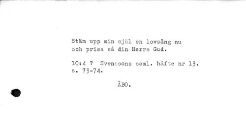 //// Stäm upp min själ en lovsång nu och prisa så din Herre Gud. //// 10:4 ? Svenssons saml. häfte nr 13. //// s. 73-74. //// ÅBO* ////