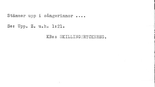 //// Stämmer upp i sångerinnor ... Se: Upp. Z. u.fr. 1:21. //// ; //// KB:s SKILLINGTRYCKSREG. I //// : I //// i-I ////