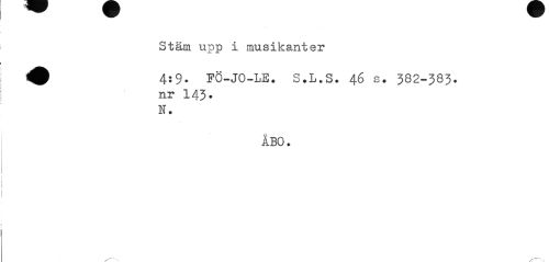 //// Stäm upp i musikanter //// 4:9. FÖ-JO-LE. S.L.S. 46 s. 382-383. //// nr 143» H. //// ÅBO. //// ---s ////