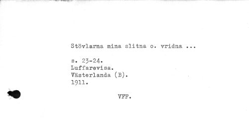 //// Stövlarna mina slitna o. vridna ... //// s. 23-24. //// Luffarevisa. Vasterlanda (B). //// 1911. ////