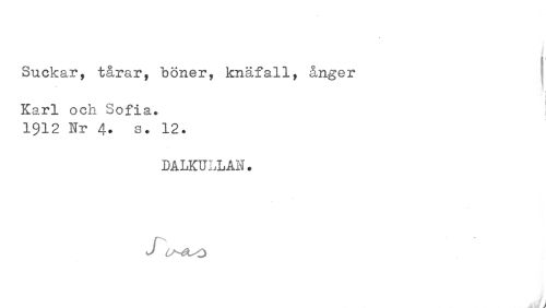 //// Suckar, tårar, böner, knäfall, ånger //// i //// Karl och Sofia. 1912 Hr 4. s. 12. //// DALKULLAN. //// J (VNSt-O //// ,åfaD i ////