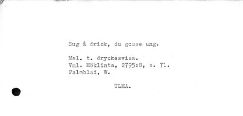 //// Sug å drick, du gosse ung. //// Mel. t. dryekesvisa. //// Vml. Möklinta, 2795*8, s. 71, //// Palmblad, W. //// ULM A. ////