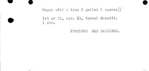 //// Sugga sått i bina å gniled å spann:// //// •1:5 nr 21, sid» 63* Gammal Moralåt. //// « //// X B t X* * //// F0R3LUND IvIED DALÄLVEN. ////